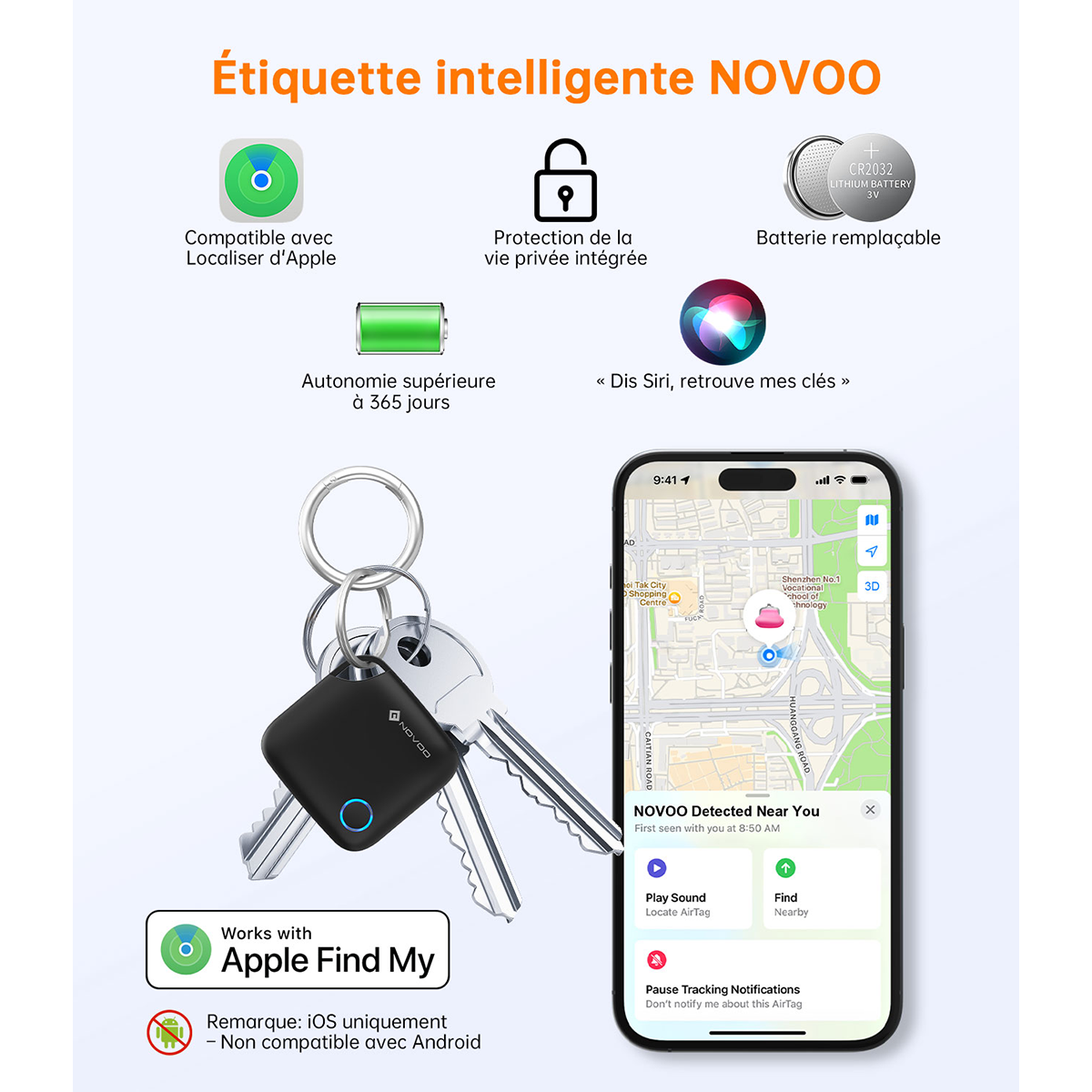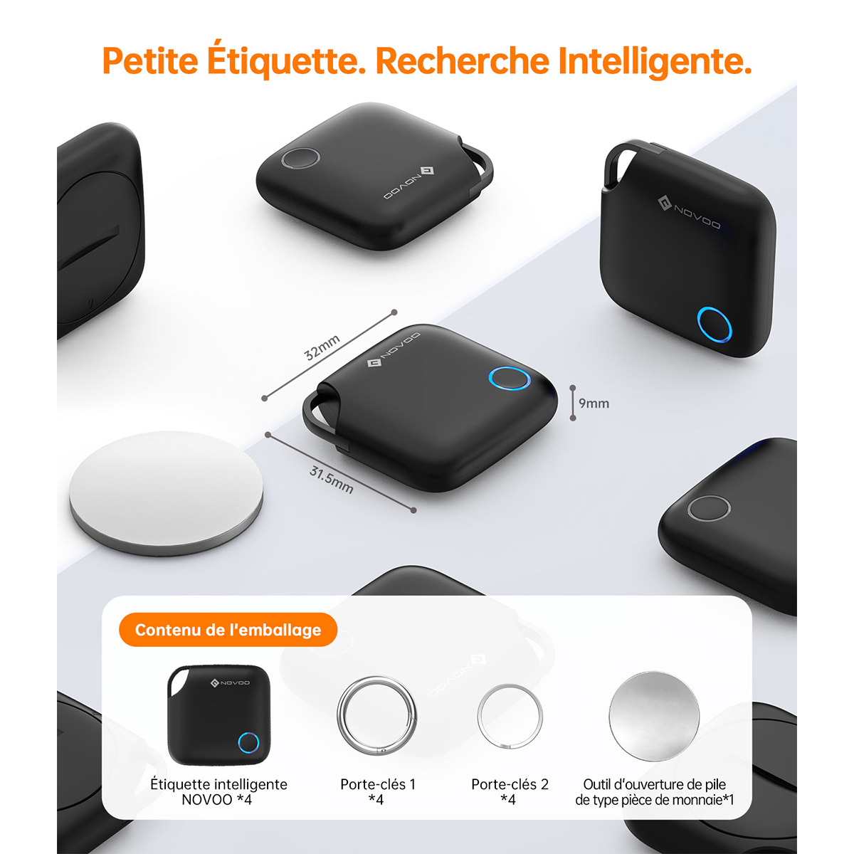 NOVOO Smart Tag - Localisateur de Clé 4-Pack Compatible avec Apple Find My | Alternative au Apple AirTag