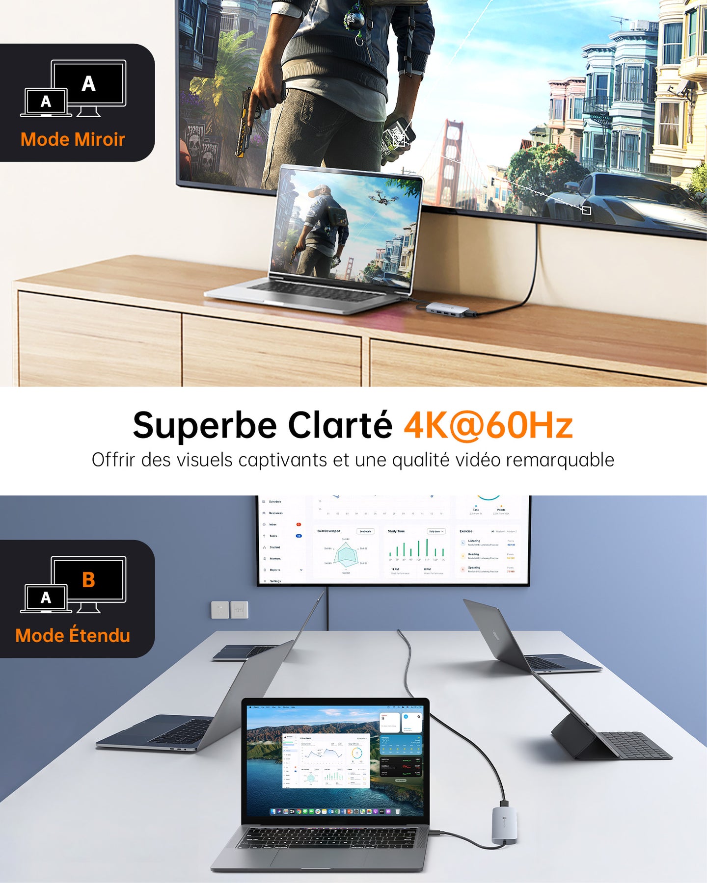 Transferts rapides & fiables – Jusqu’à 5 Gbps pour connecter vos accessoires (clavier, souris, disque dur…).