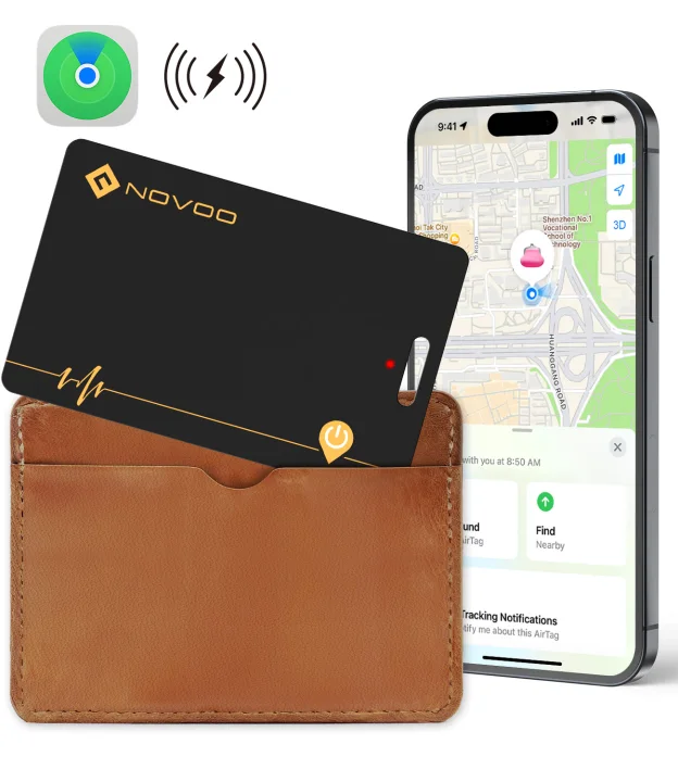 Carte Air Tag NOVOO — Traceur Bluetooth Rechargeable Sans Fil, Étanche IP68 pour Portefeuille & Bagages