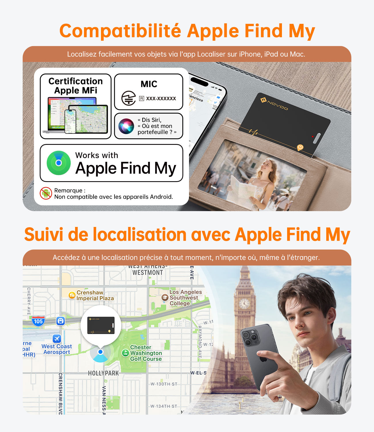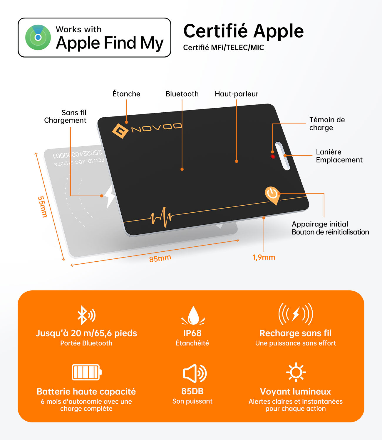 🔊 Alarme Puissante 85 dB Faites sonner votre carte depuis votre iPhone. Son signal de 85 dB est assez puissant pour être entendu à travers les coussins ou depuis une autre pièce.